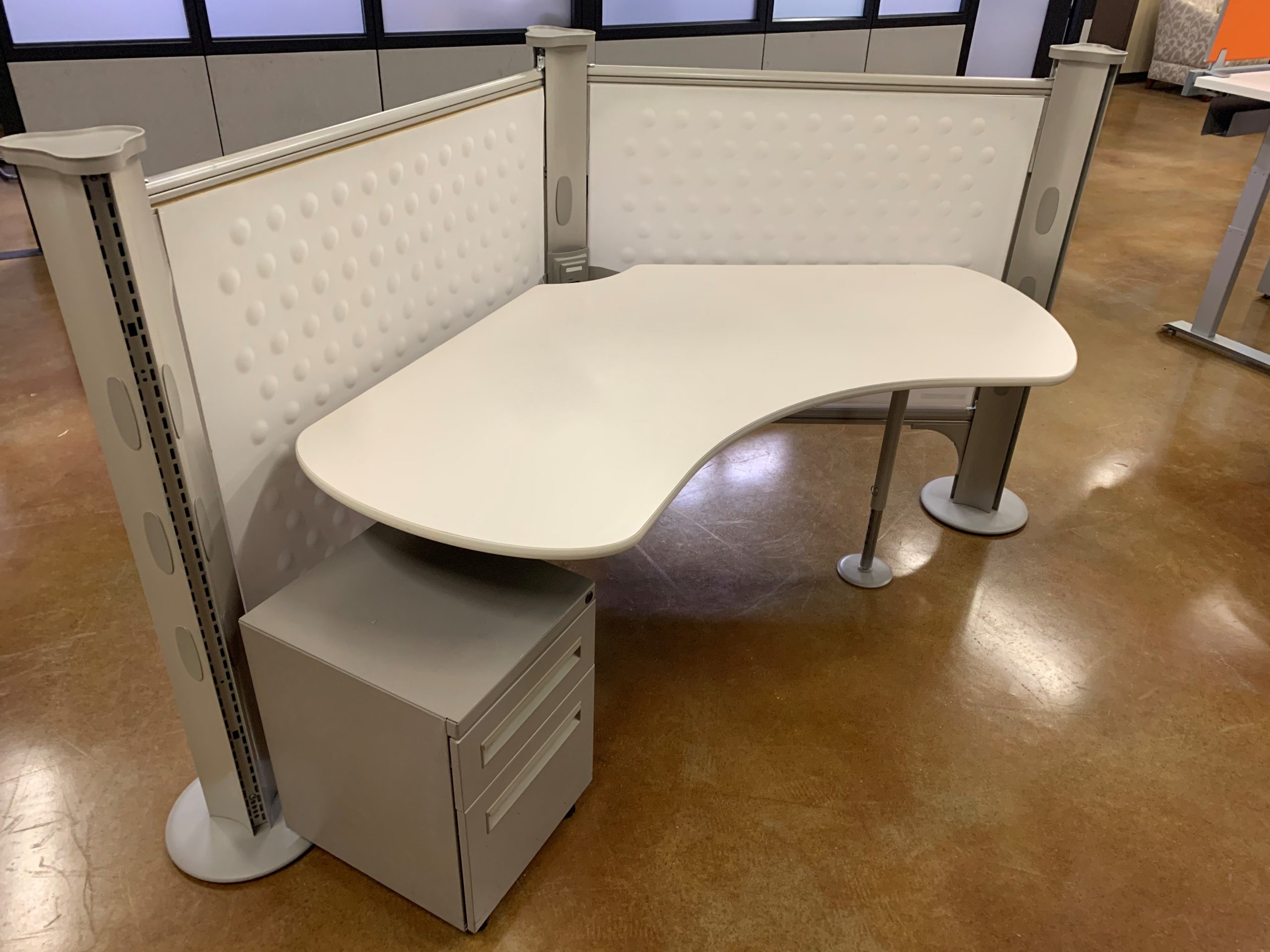 Herman Miller Resolve 120 degree Workstations THESE STATIONS HAVE HARDLY BEEN USED! With their modern appeal, these cubicle stations are at the front of the pack in terms of office furniture design. While they have hardly been used, they have a price tag that is drastically reduced from what you would pay for brand new cubicles. Why spend more for the same thing?